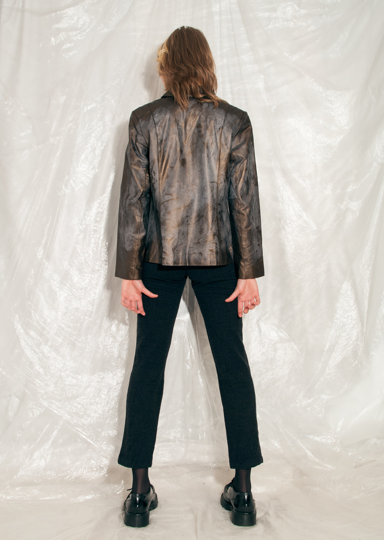 Vintage Leather Jacket Y2K Reworked Smoke Painted Coat