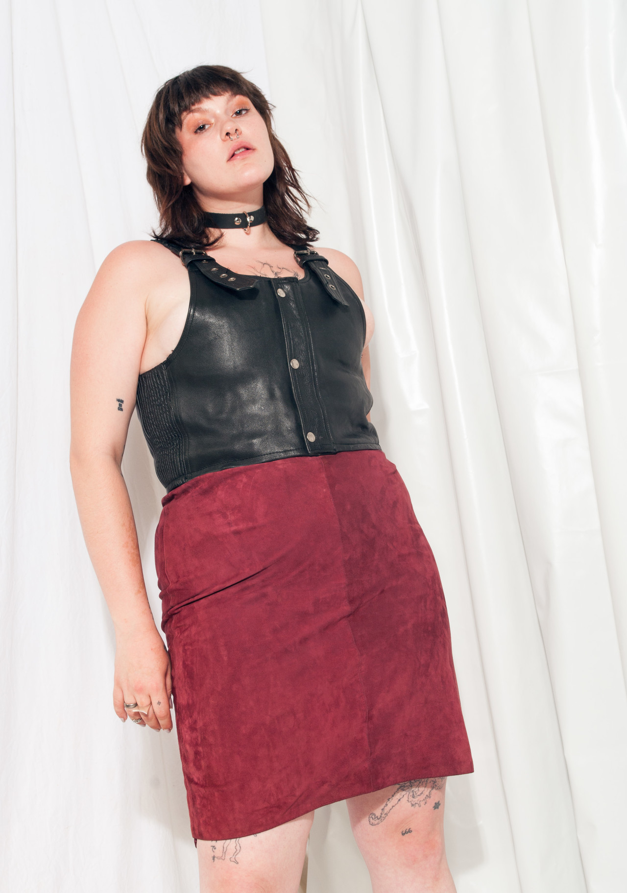 This vintage leather skirt from the 80s has clearly withstood the test of time, its excellent condition says it all. It’s made of genuine maroon suede and comes with matching lining and a button & zip closure. As you can see, our vintage shop is full of one-off treasures, take this one before it’s gone!