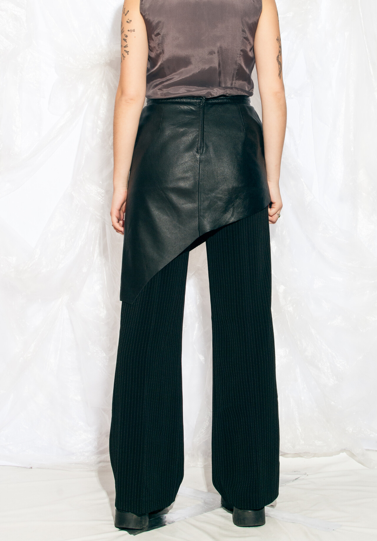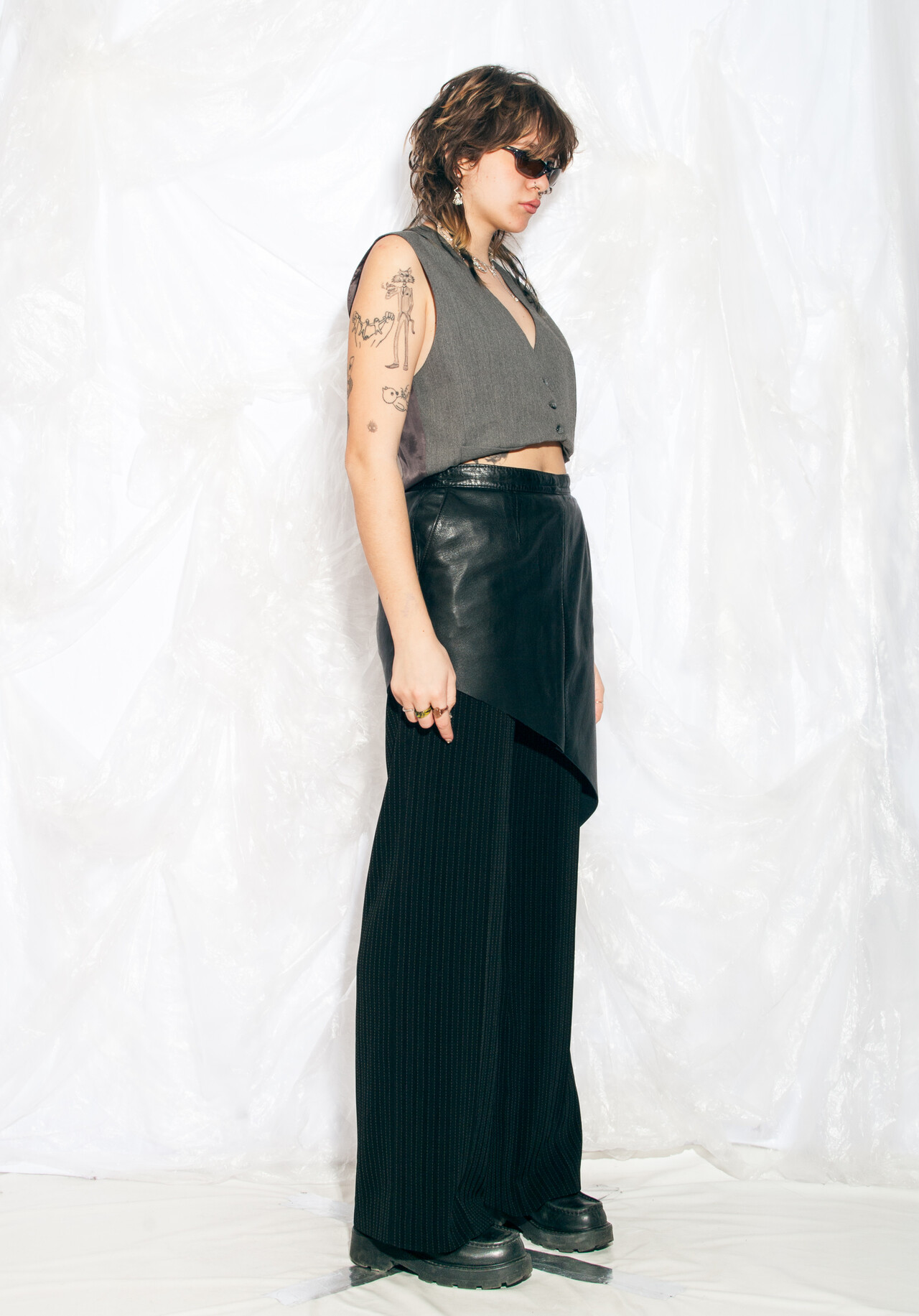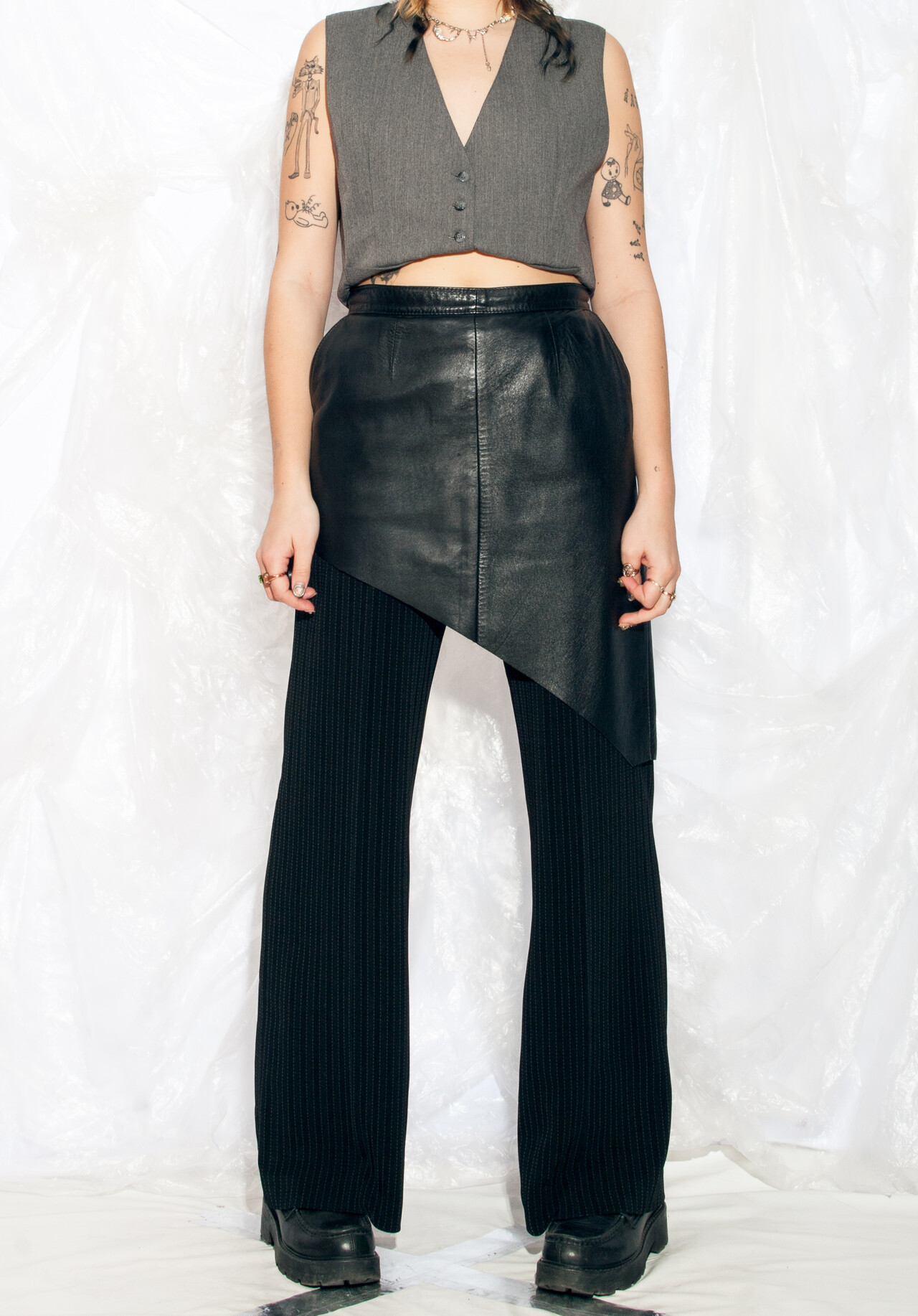 Vintage Leather Skirt 80s Reworked Asymmetric Midi in Black