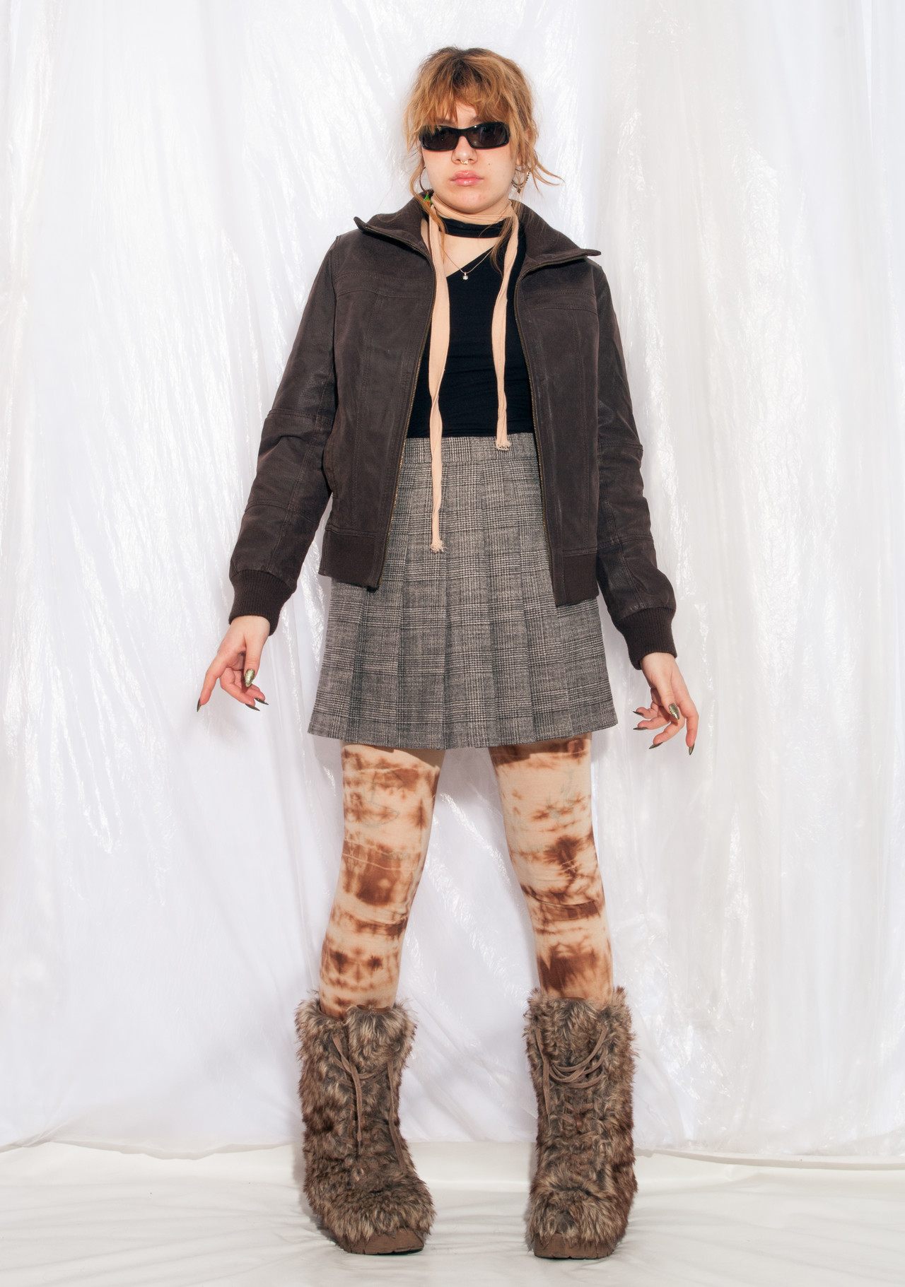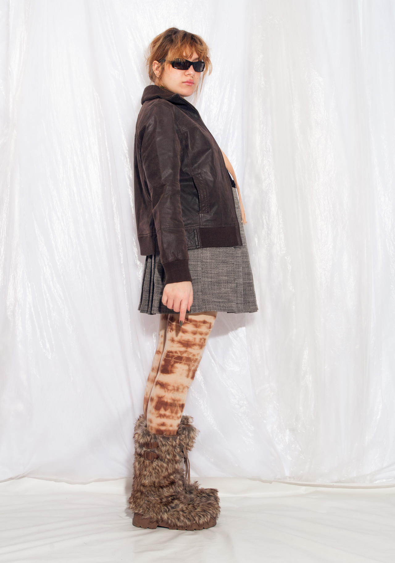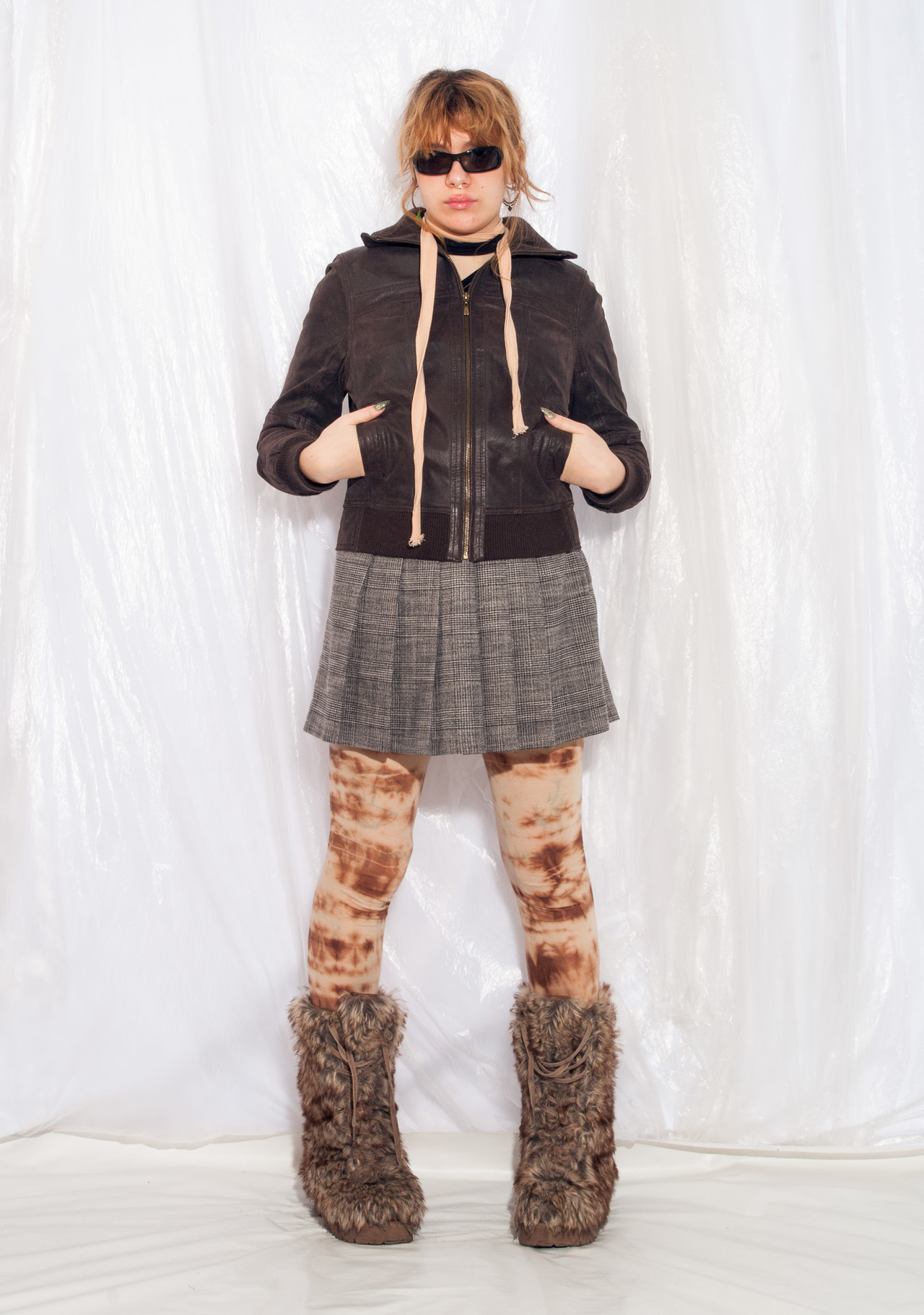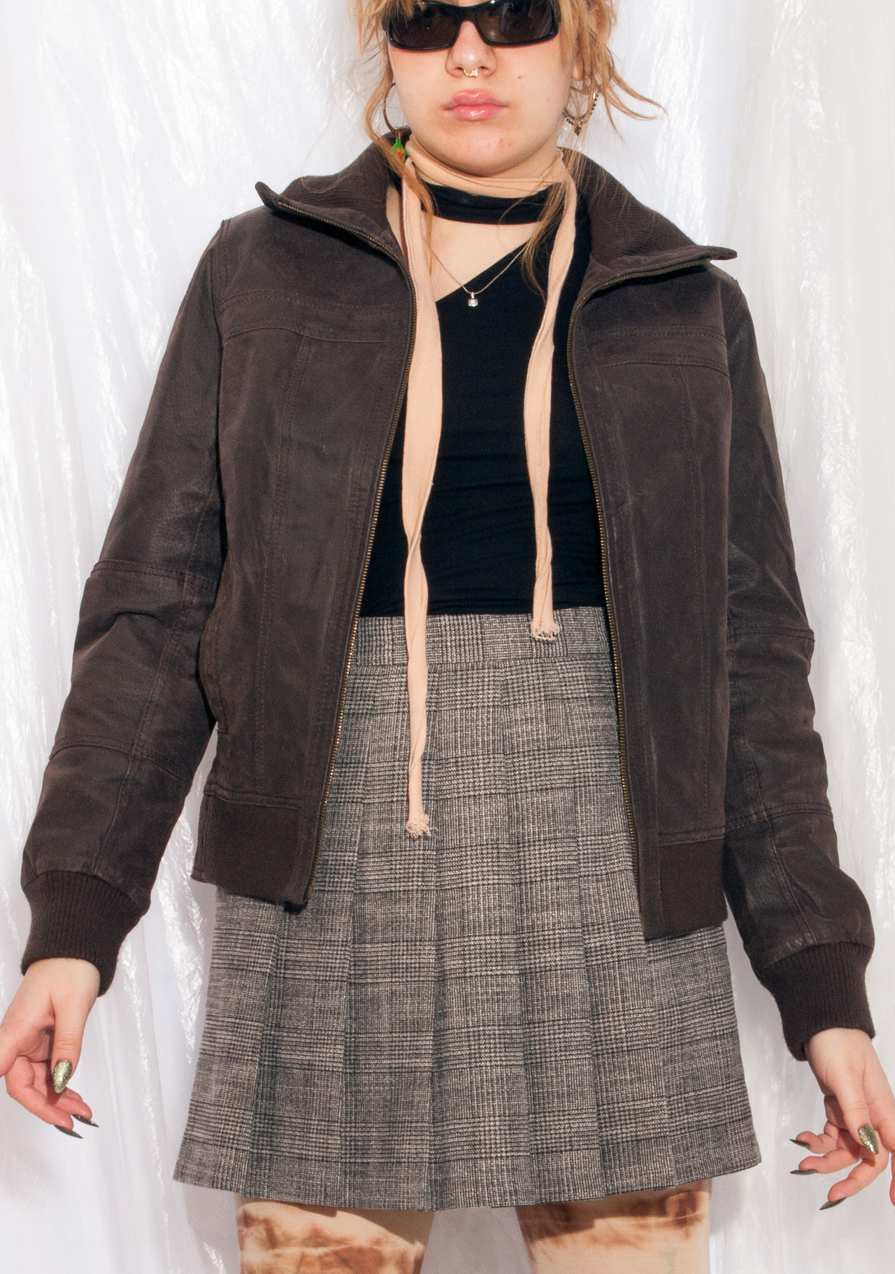 A Y2K vintage leather racer jacket that survived all these years in excellent condition — we cleaned and fixed it for you. It’s made of brown leather and has three pockets (one of them is on the inside) and a zip closure. It’s also lined. Grab your daily dose of sustainable vintage fashion!