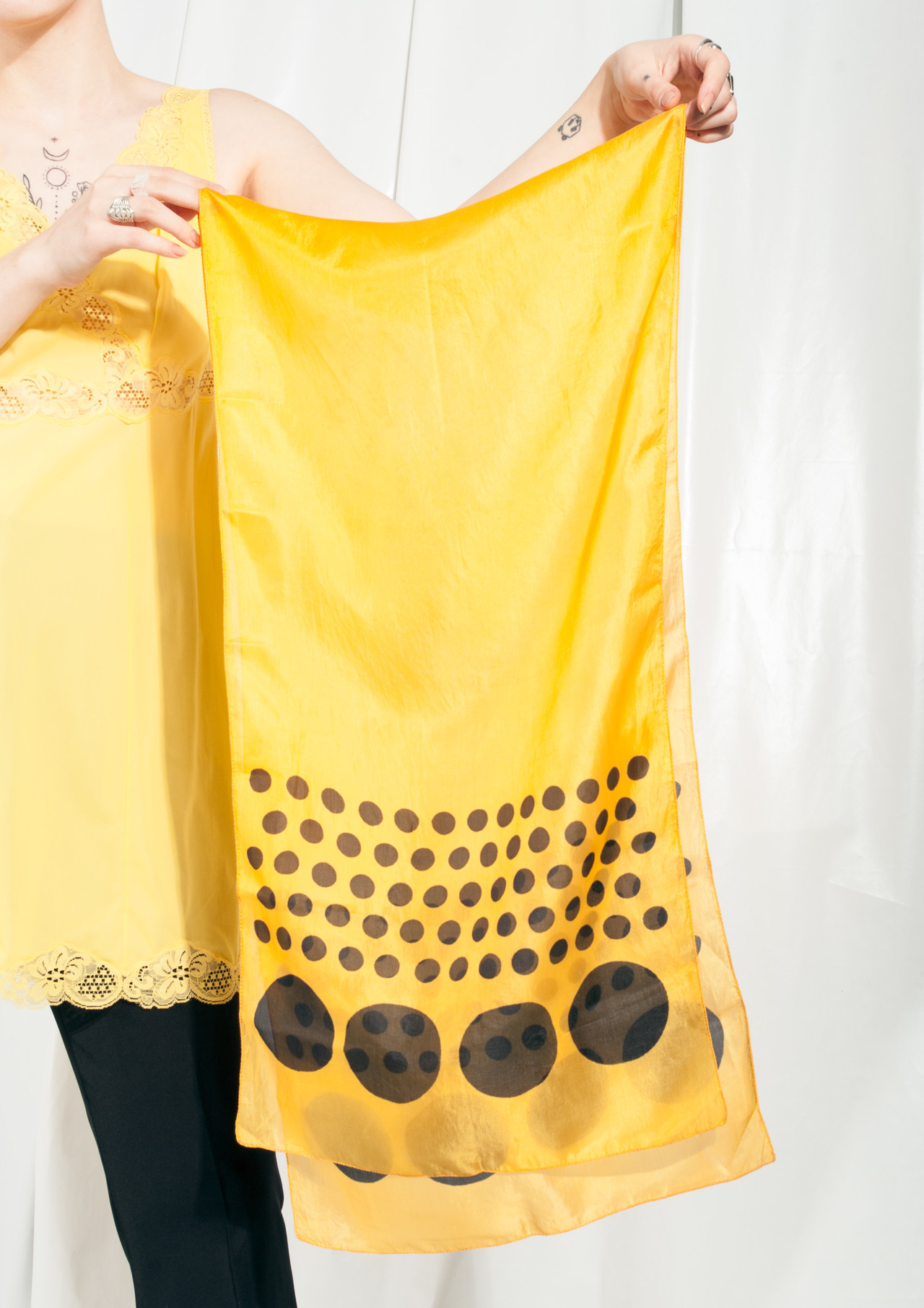 Vintage Silk Scarf 60s Mode Space Age Dotted Shawl in Yellow