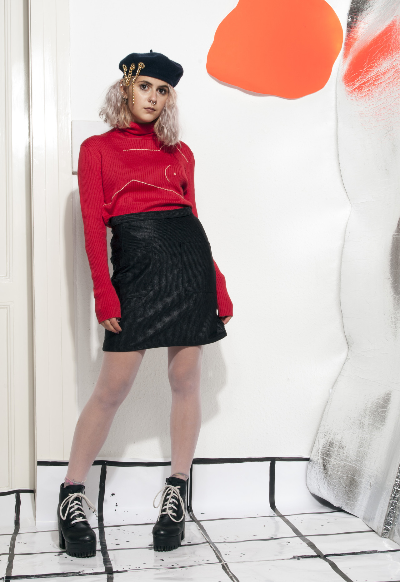 Be the first to review “Vintage skirt 80s high-waisted shiny black ribbed mini skirt” Cancel reply