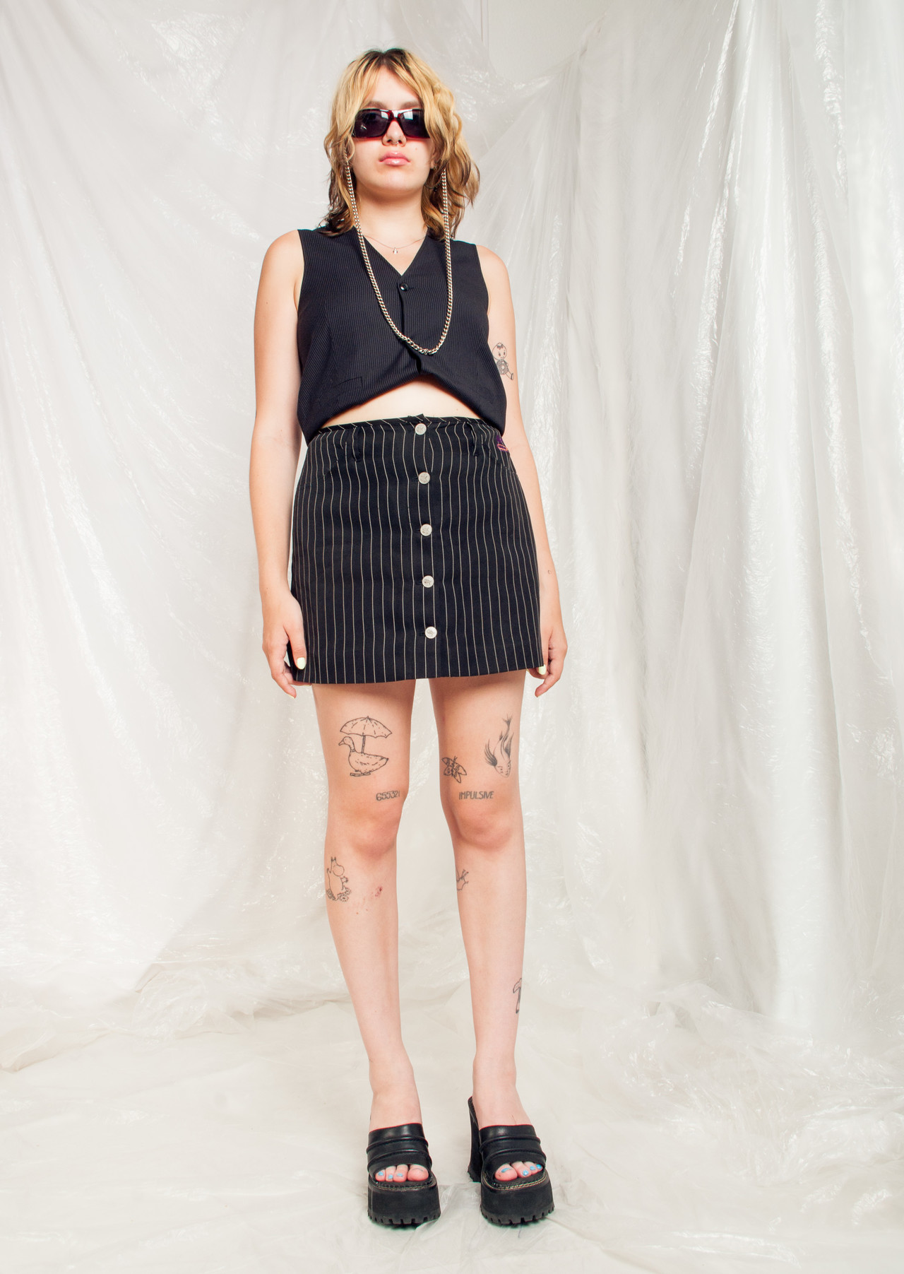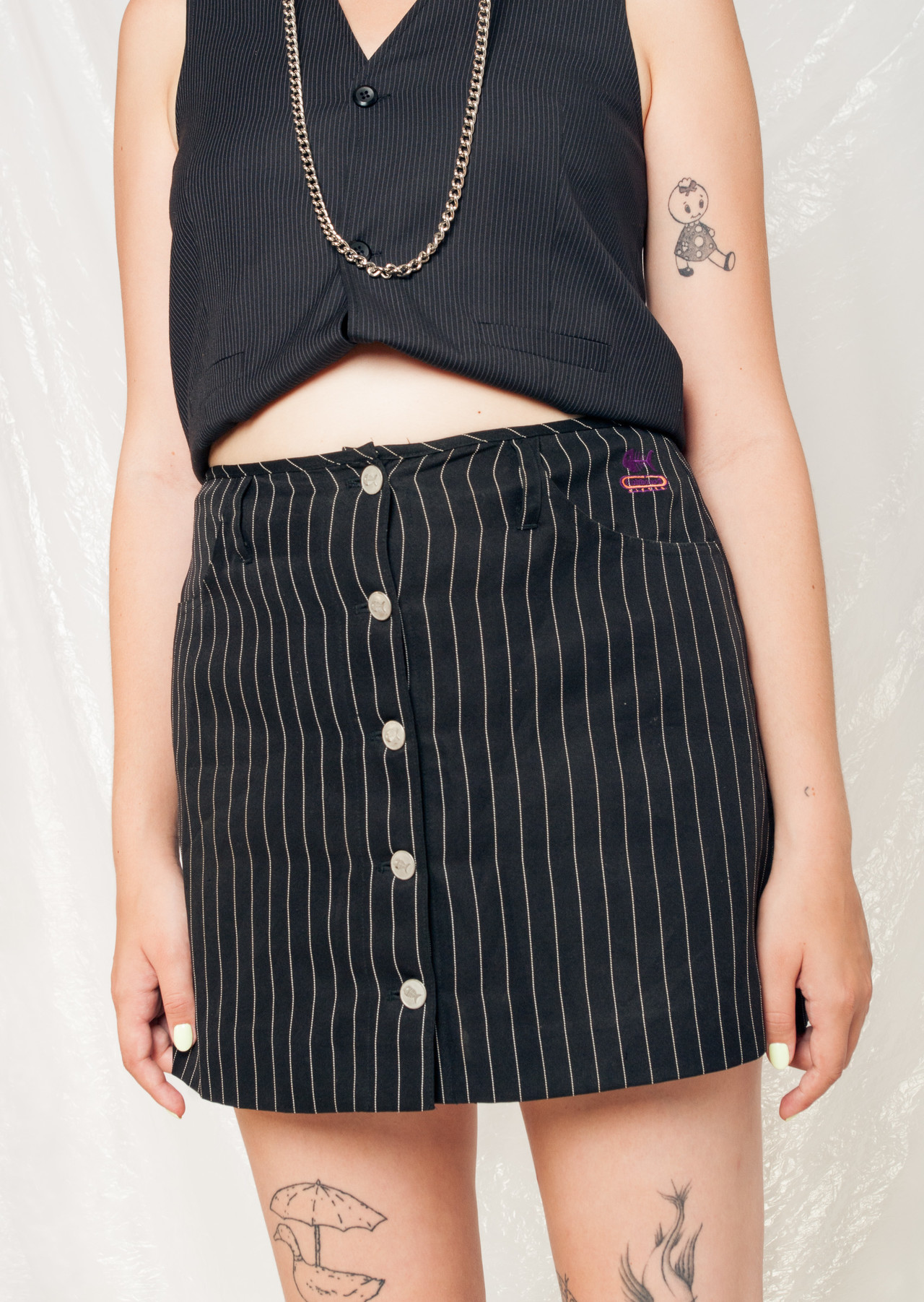 Be the first to review “Vintage Skirt 90s Pinstriped High Waisted Mini in Black” Cancel reply