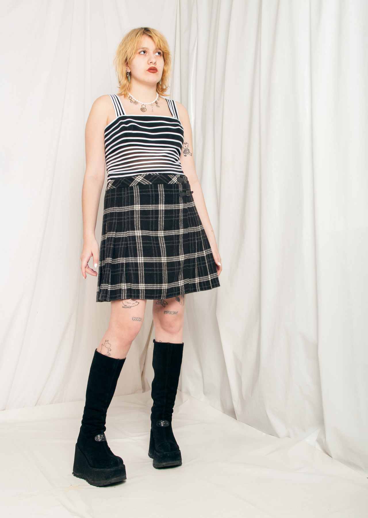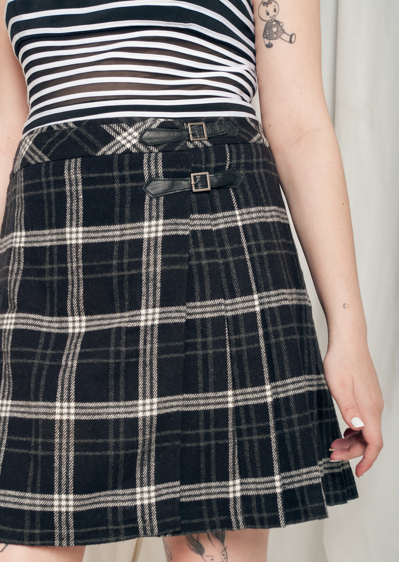 Vintage Skirt 90s Plaid Grunge Kilt in Black