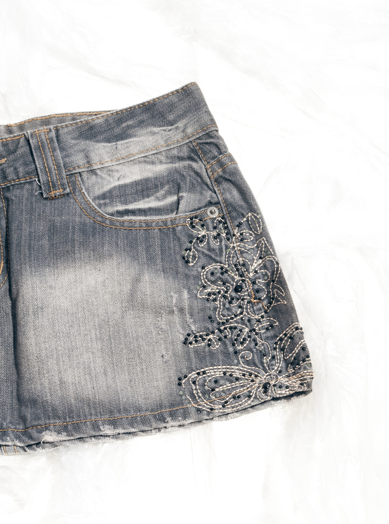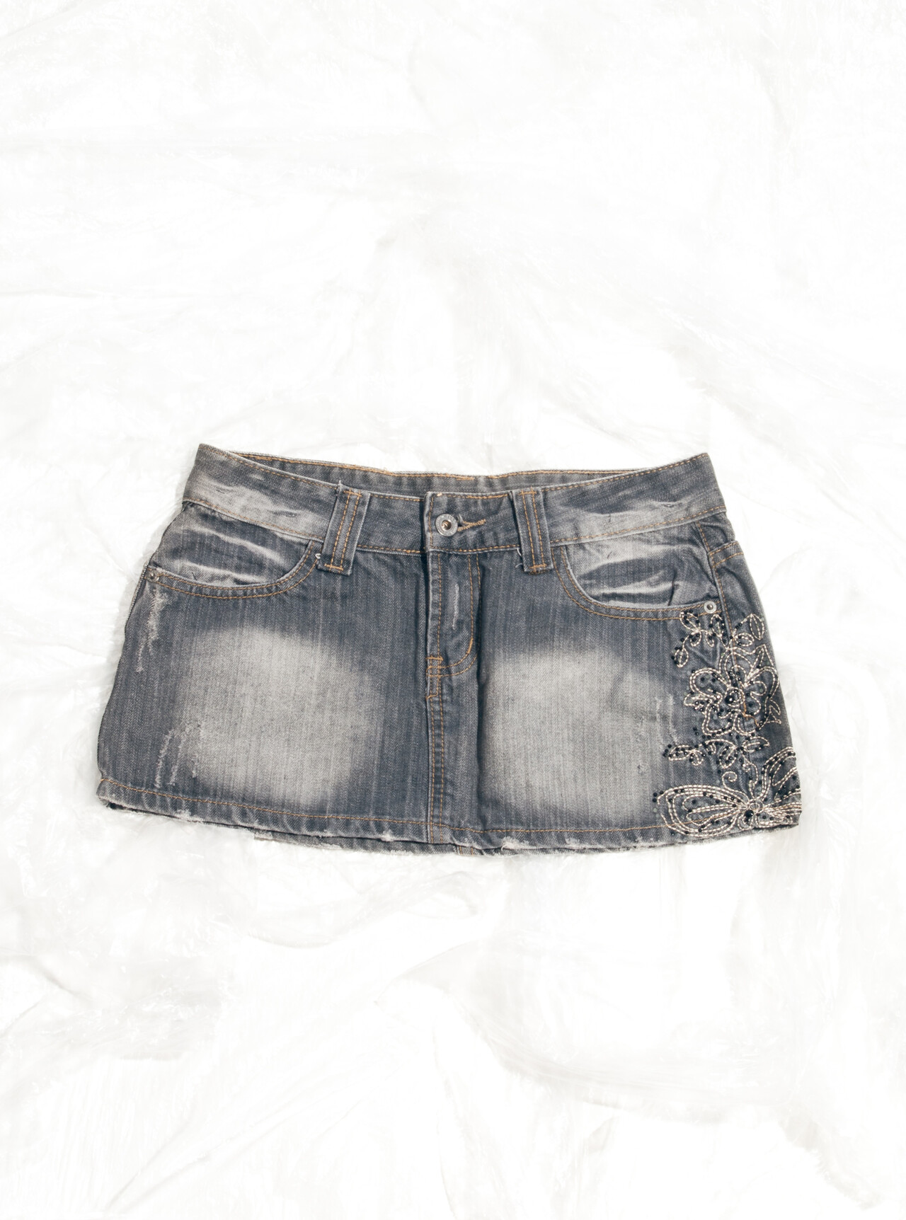 Vintage Skirt Y2K Fairy Emboidery Denim Ultra Mini in Grey