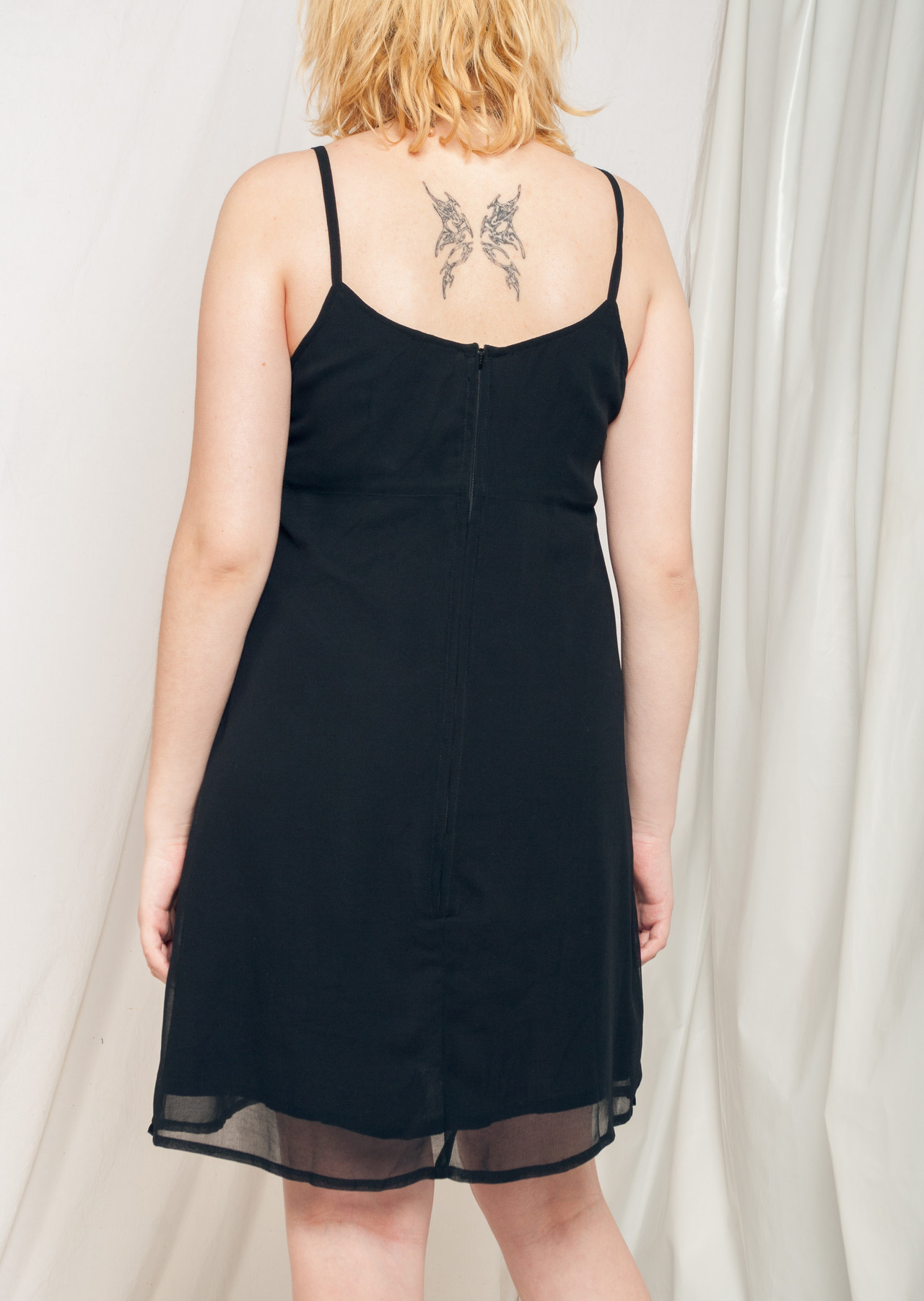 Vintage Slip Dress Y2K Sheer Flower Power Mini in Black