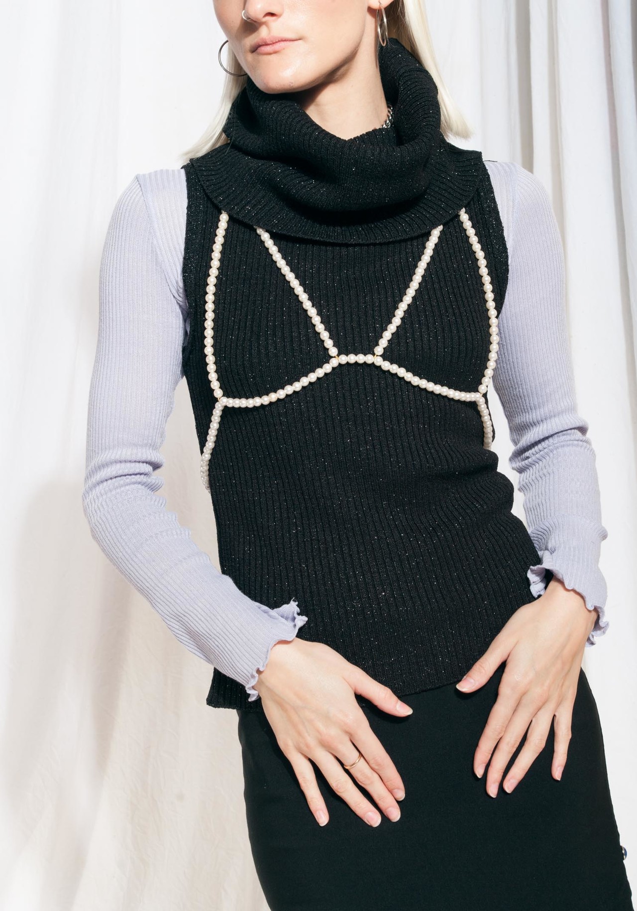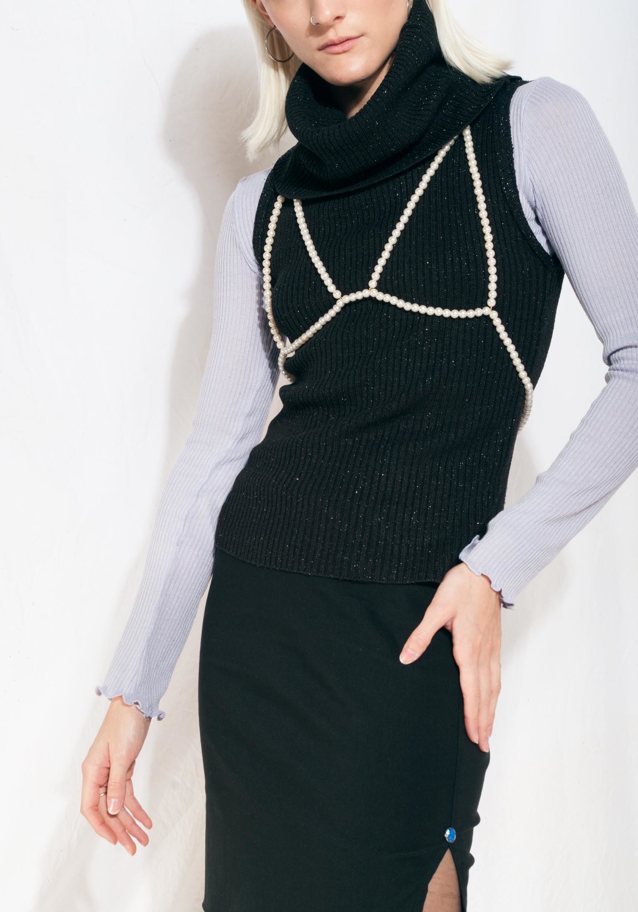 Be the first to review “Vintage top Y2K glitter black turtleneck knit vest” Cancel reply