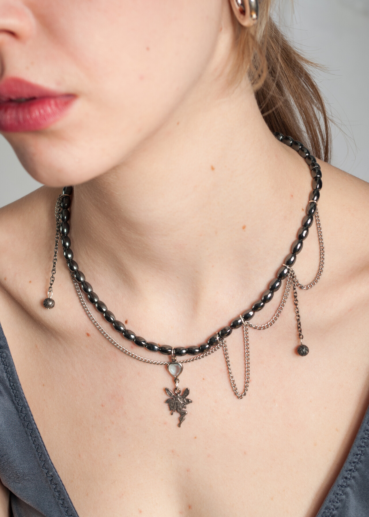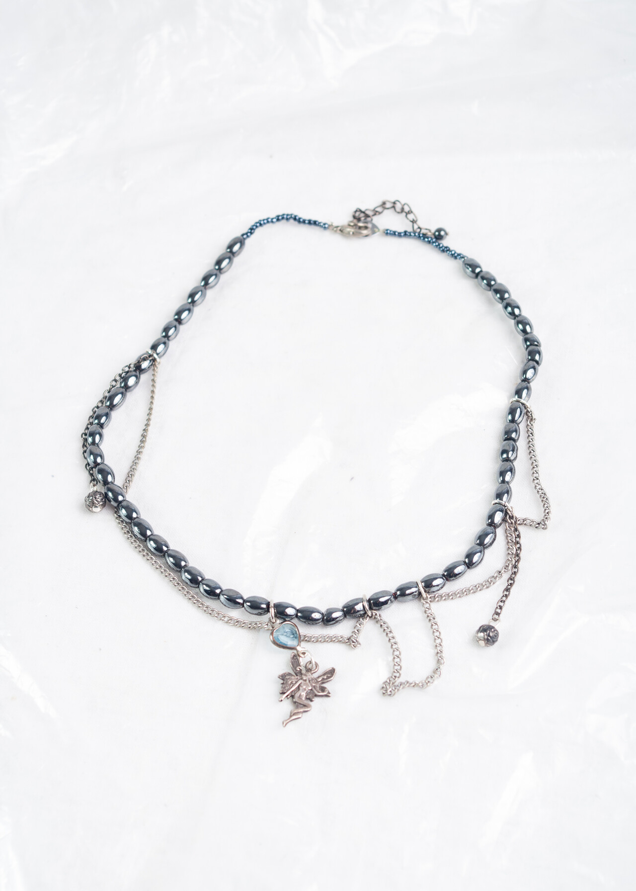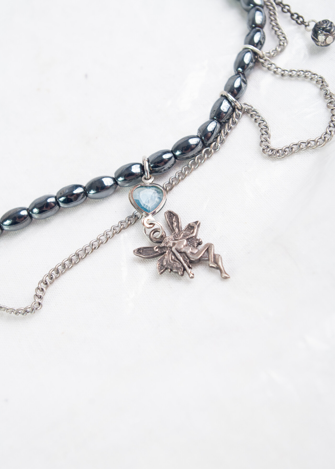 Tags: 2000s jewelry, fairy pendant, fairycore, glass beads, handmade necklace, made from found objects, y2k vintage fashion